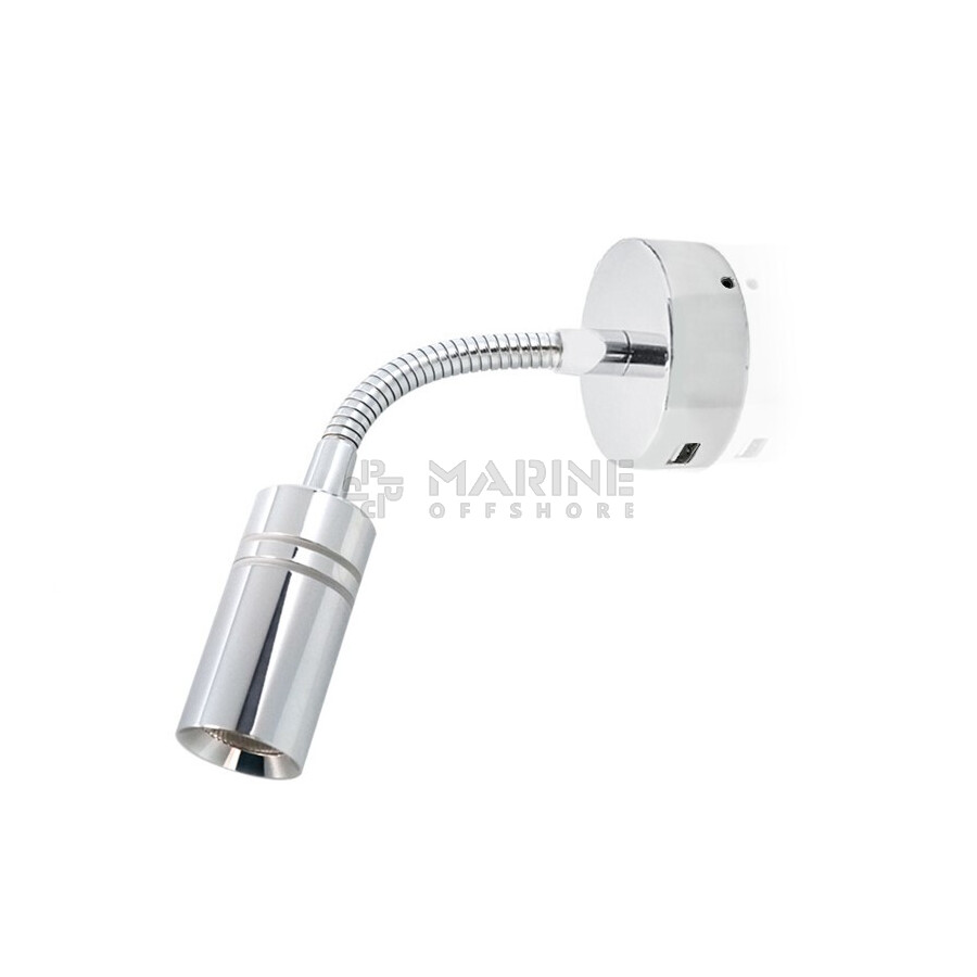 De Apache J-LED - Interior series - No.03 is een mooie leeslamp voor in bijvoorbeeld de boot of caravan. De lamp is 350° horizontaal en 90° verticaal draaibaar. Door de vorm heeft de lamp een groot stralingsgebied en wordt er dus een groot gebied verlicht.
