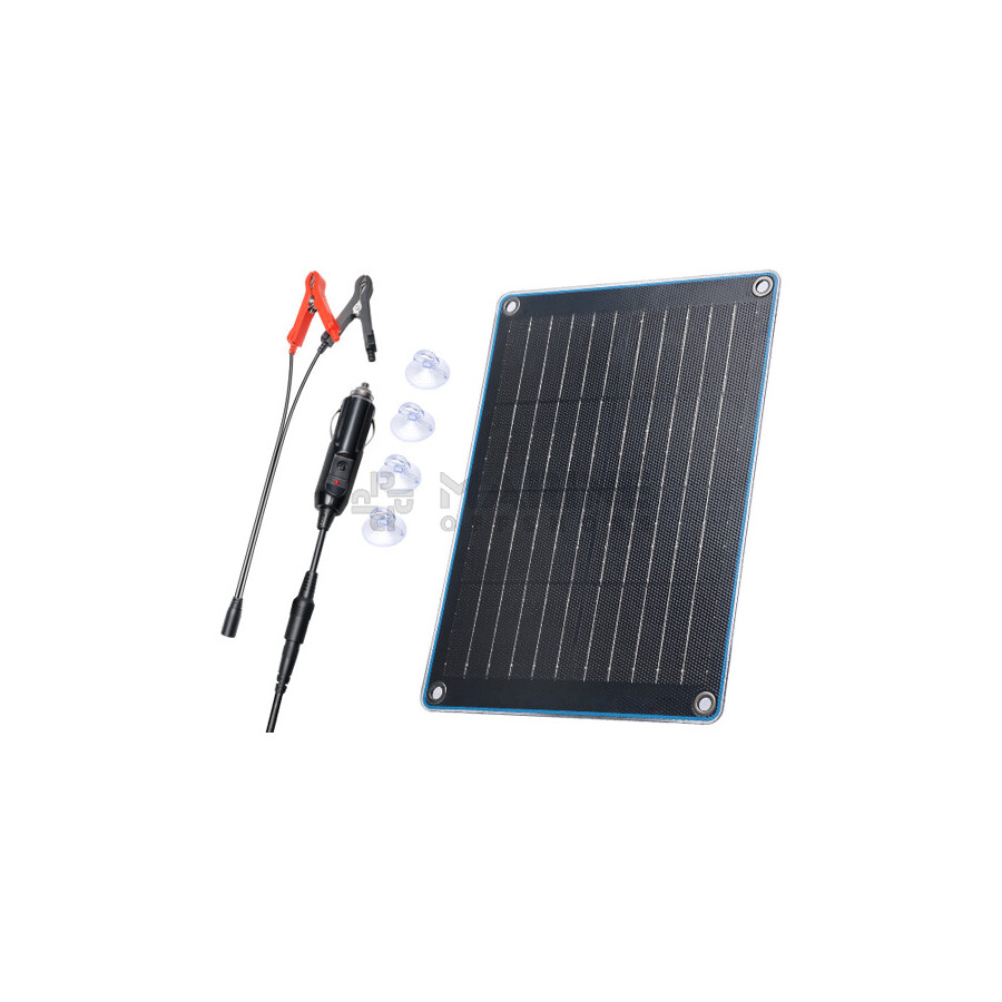 Compact Solar Panel (31.7 x 21.1 x 0.23 cm) supplied with battery clamps and Cigarette lighter plug, 10W, 19.3V VOC, 0.66A ISC