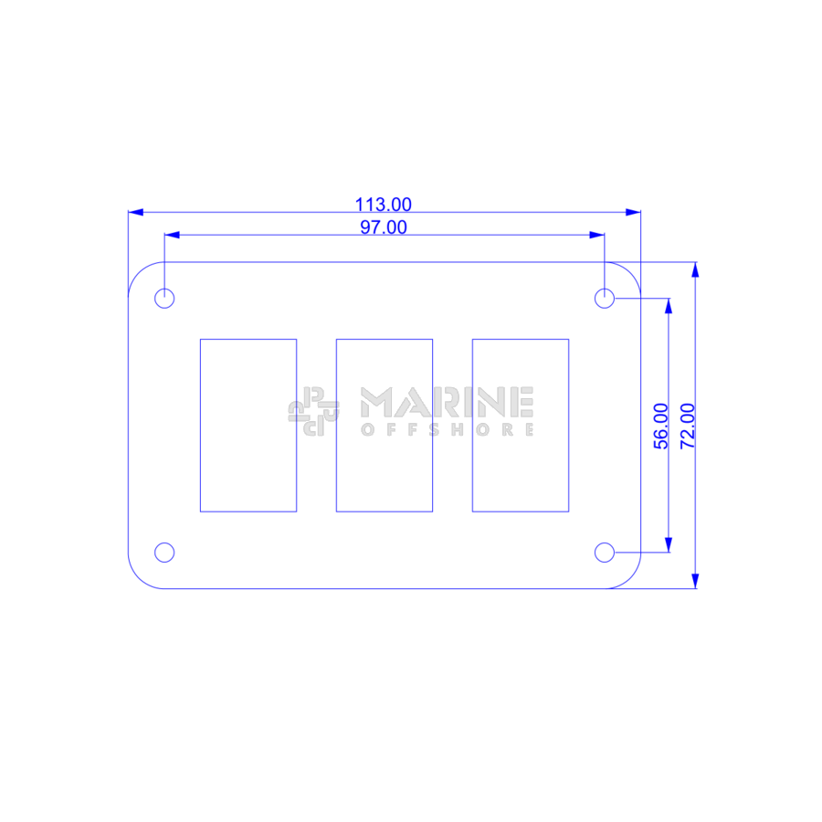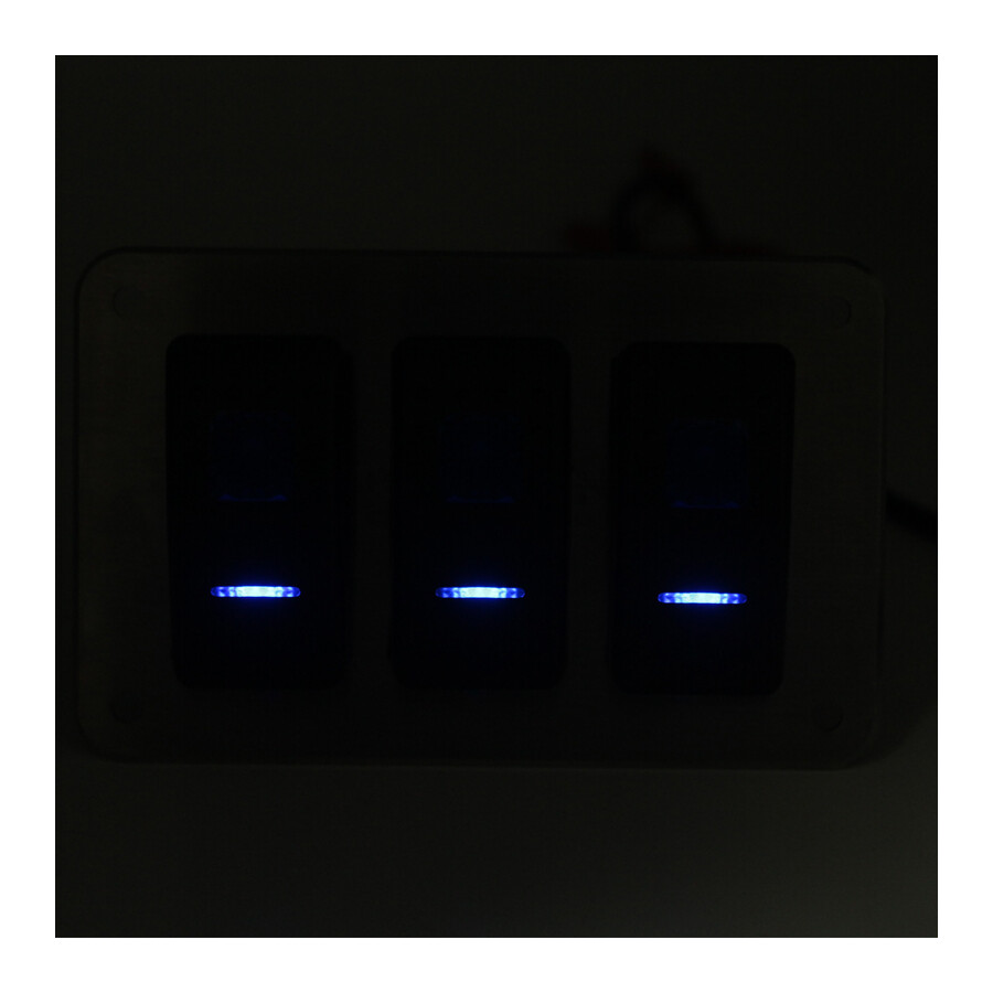 Stainless steel 316L switch panel, 3-way, 12-24V, Blue LED, IP65